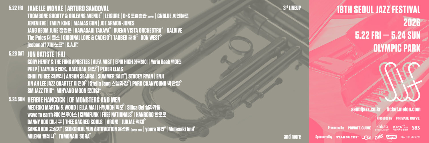 현재 3차 라인업까지 발표되었으며, 글로벌 재즈 및 팝 씬의 거장들이 이름을 올렸습니다.